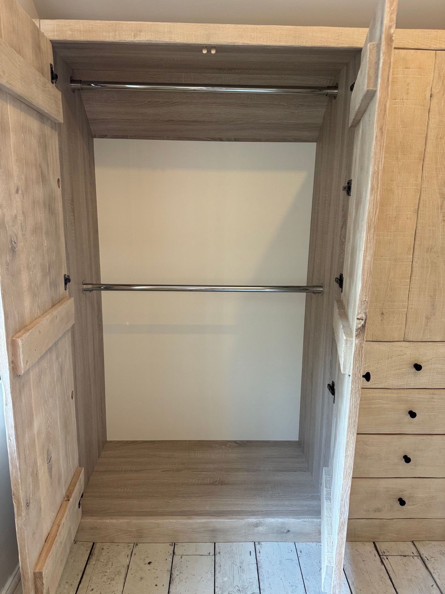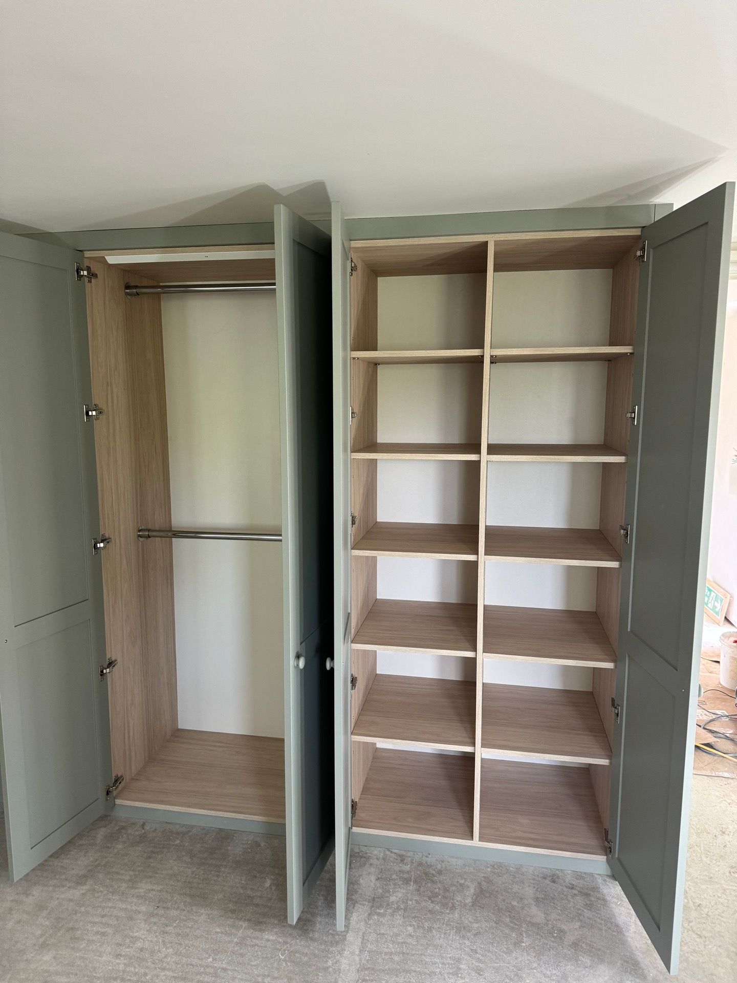 Below are examples of some of the fitted wardrobes in Bristol and Bath we have made, along with drawer units, and other bedroom storage pieces . Mostly we supply fully finished, but sometimes we would supply primed only, ready for a decorator or the client to finish themselves. We provide options for finishing to suit each customers budget and preference. We also offer a variety of interior options. These could be using pre finished textured boards with a large choice of wood grain, matt, or satin colour finish. Real wood veneer interiors, finished with an oil or lacquer.