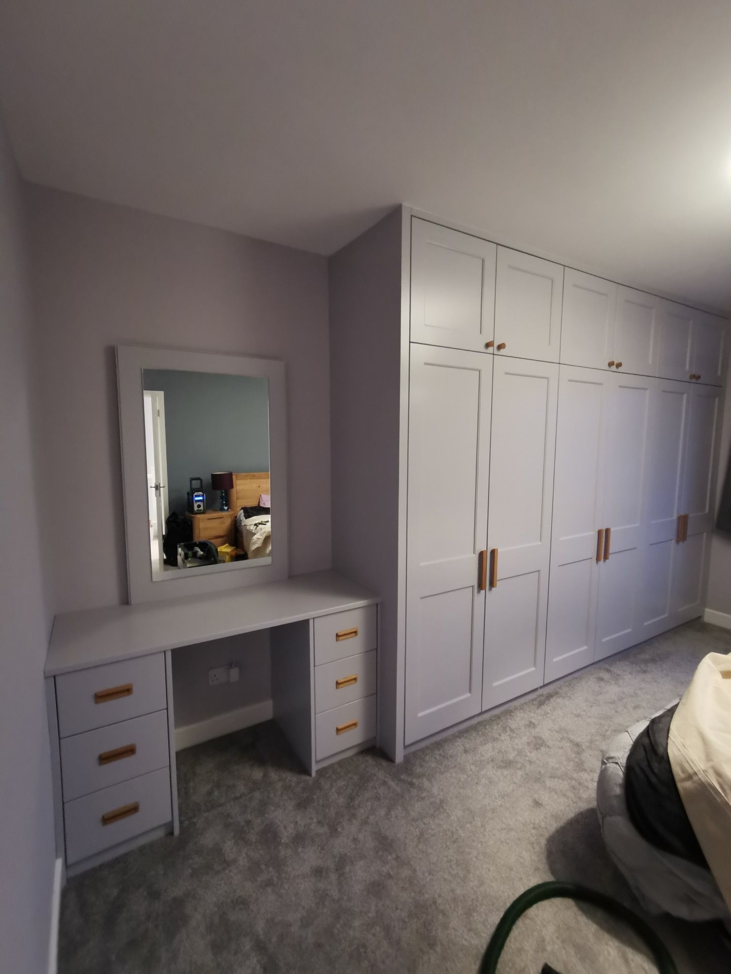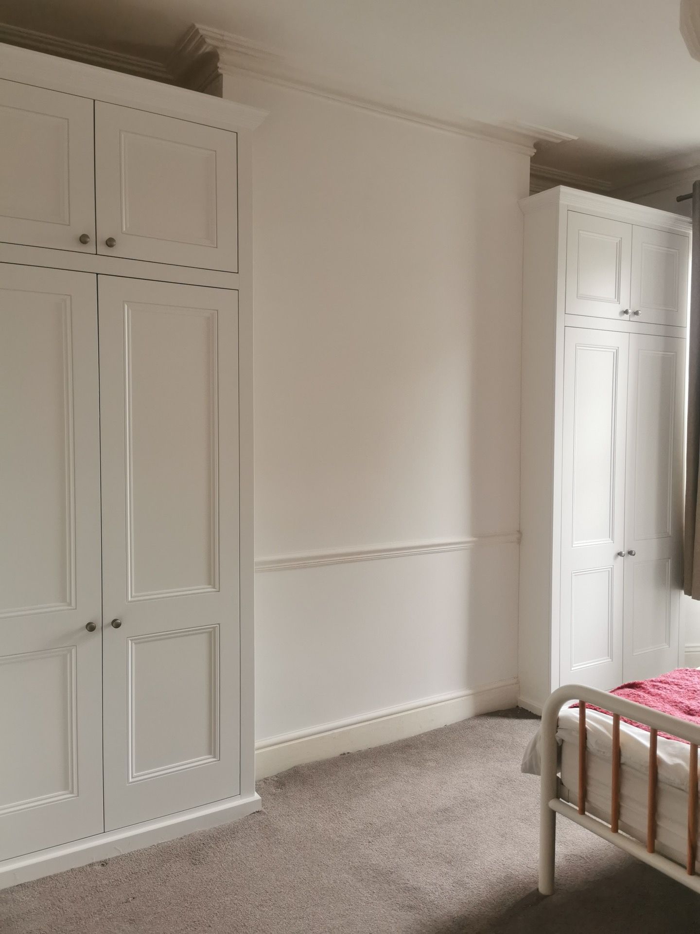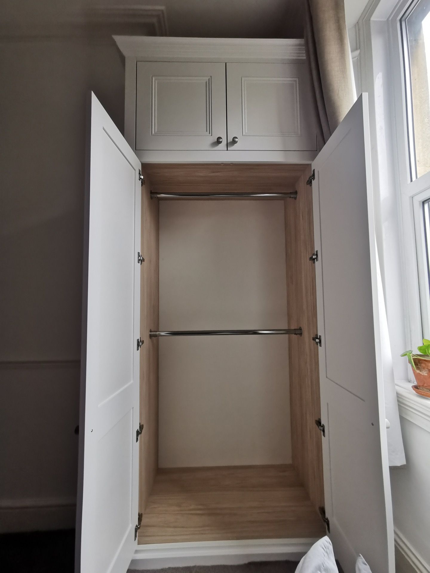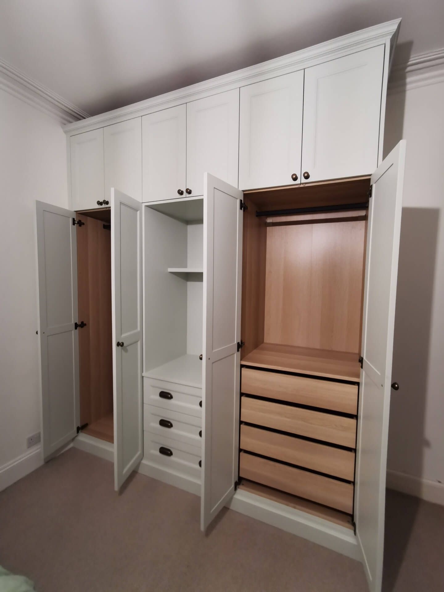 Below are examples of some of the fitted wardrobes in Bristol and Bath we have made, along with drawer units, and other bedroom storage pieces . Mostly we supply fully finished, but sometimes we would supply primed only, ready for a decorator or the client to finish themselves. We provide options for finishing to suit each customers budget and preference. We also offer a variety of interior options. These could be using pre finished textured boards with a large choice of wood grain, matt, or satin colour finish. Real wood veneer interiors, finished with an oil or lacquer.