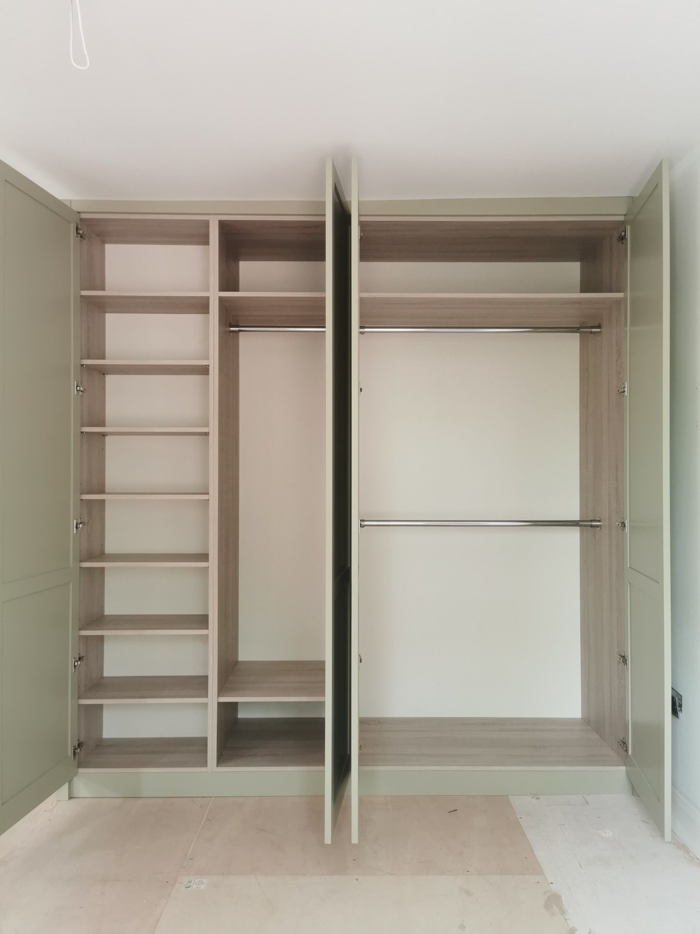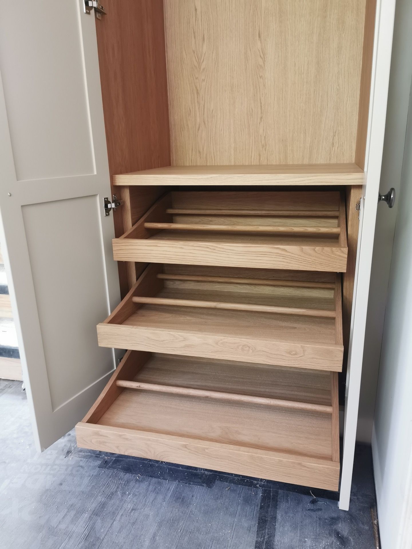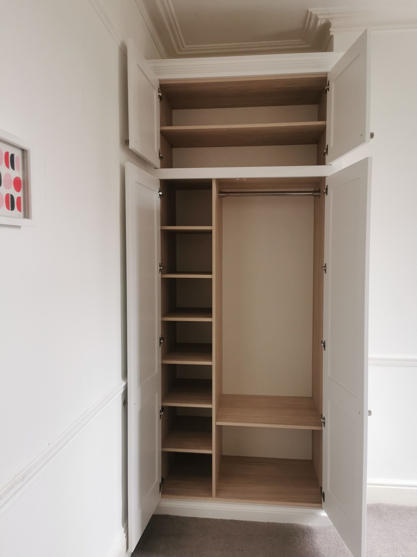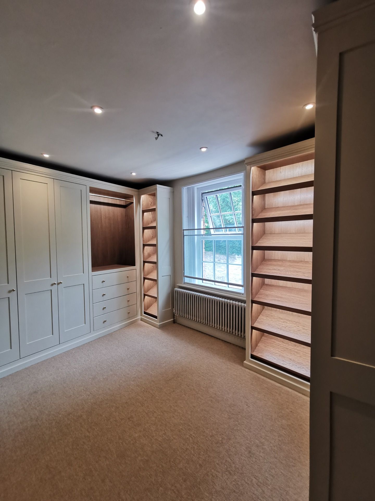 Below are examples of some of the fitted wardrobes in Bristol and Bath we have made, along with drawer units, and other bedroom storage pieces . Mostly we supply fully finished, but sometimes we would supply primed only, ready for a decorator or the client to finish themselves. We provide options for finishing to suit each customers budget and preference. We also offer a variety of interior options. These could be using pre finished textured boards with a large choice of wood grain, matt, or satin colour finish. Real wood veneer interiors, finished with an oil or lacquer.