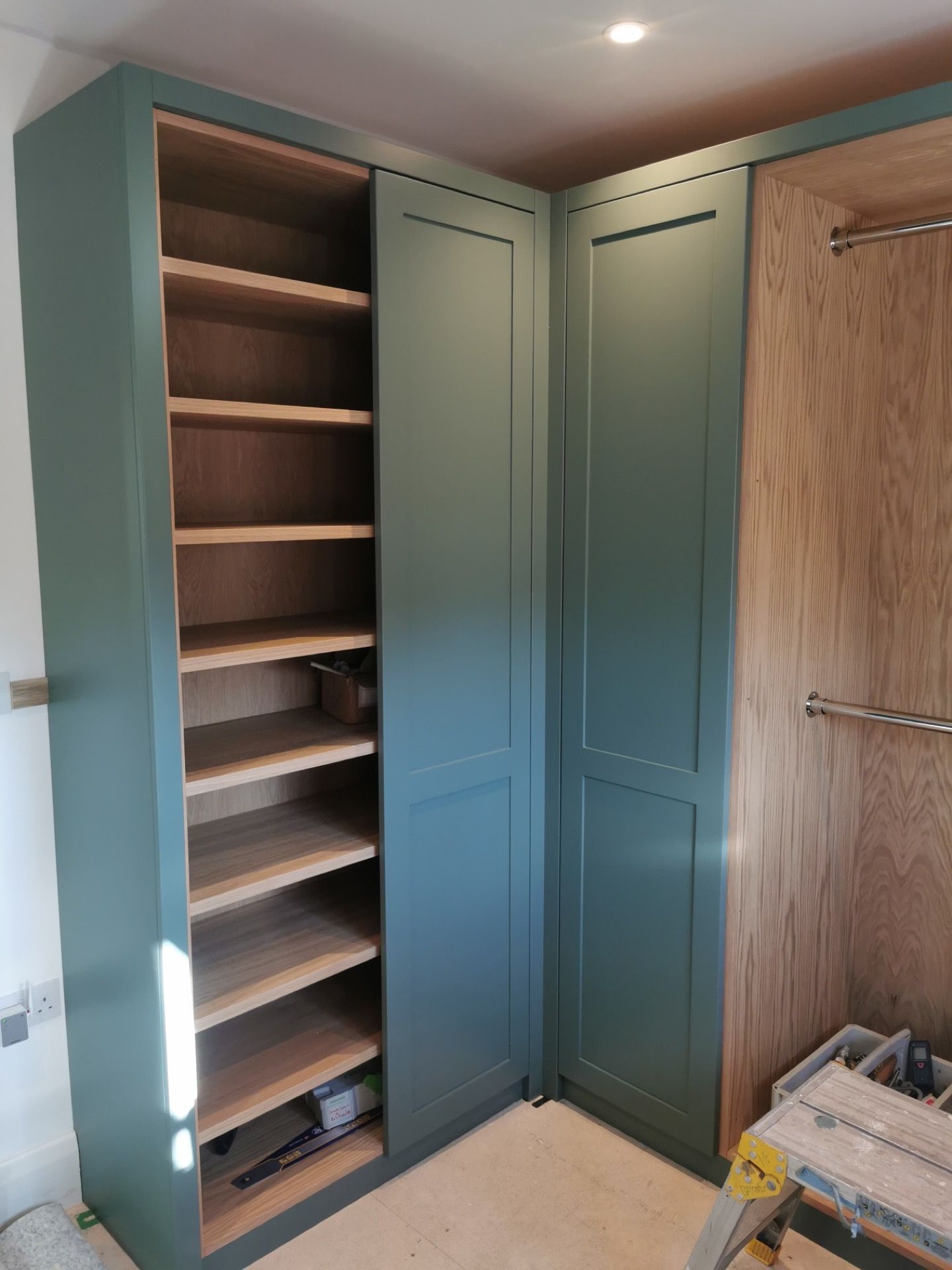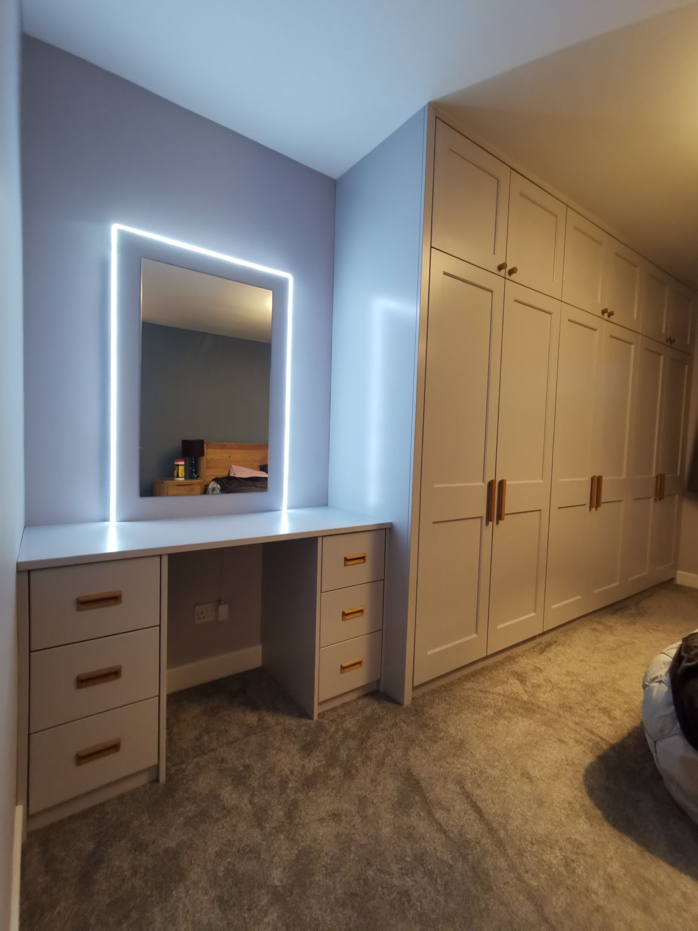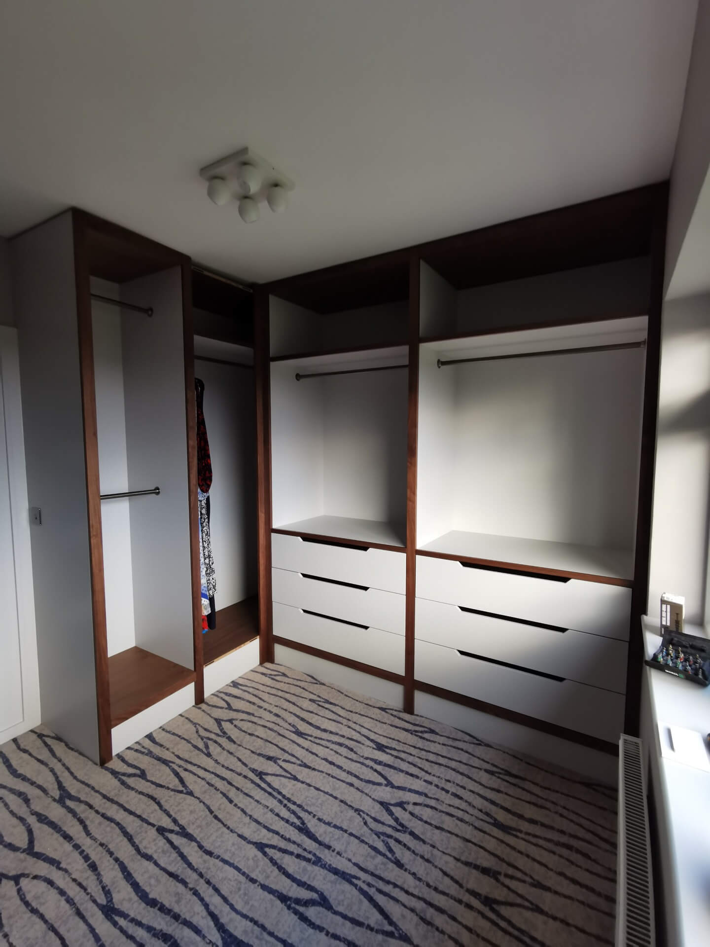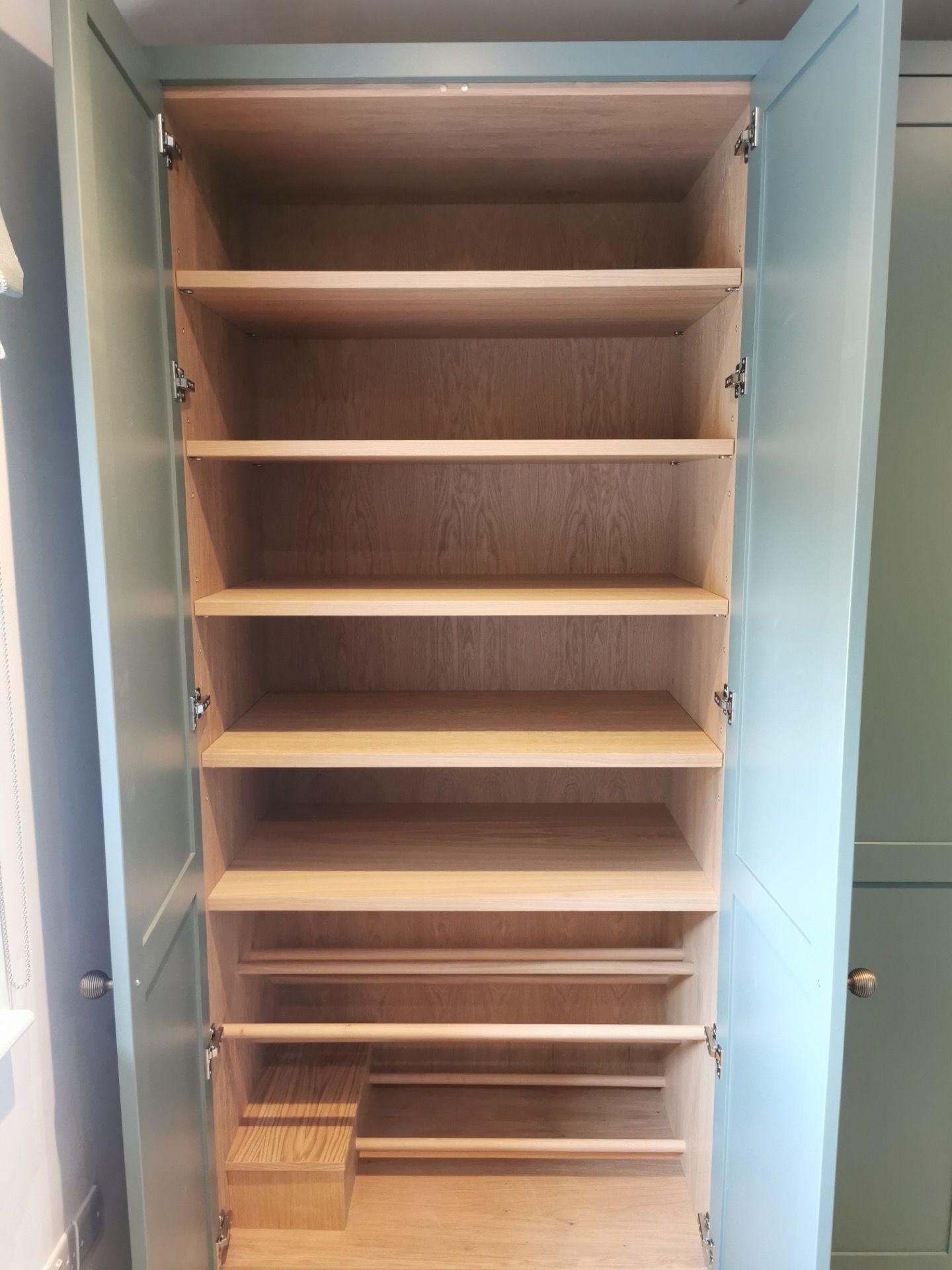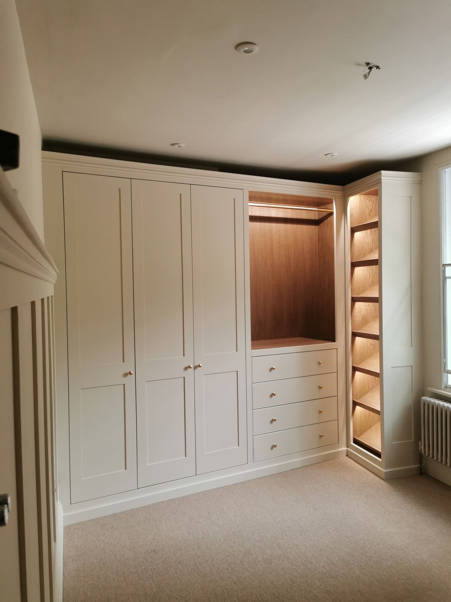 Below are examples of some of the fitted wardrobes in Bristol and Bath we have made, along with drawer units, and other bedroom storage pieces . Mostly we supply fully finished, but sometimes we would supply primed only, ready for a decorator or the client to finish themselves. We provide options for finishing to suit each customers budget and preference. We also offer a variety of interior options. These could be using pre finished textured boards with a large choice of wood grain, matt, or satin colour finish. Real wood veneer interiors, finished with an oil or lacquer.