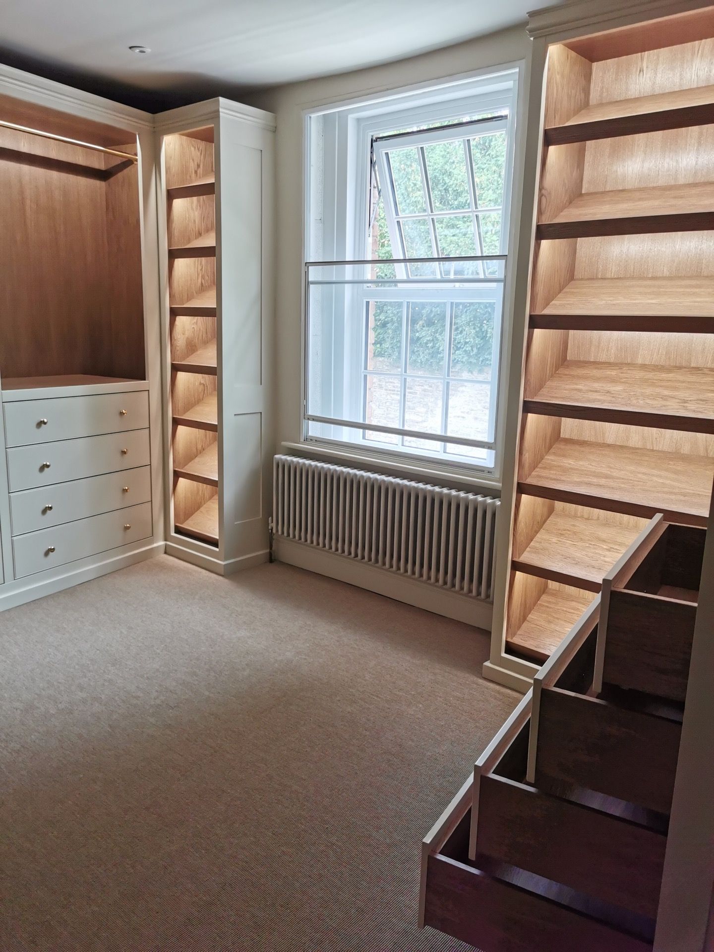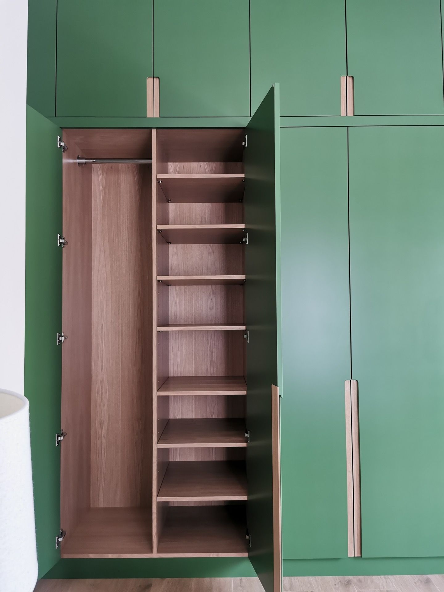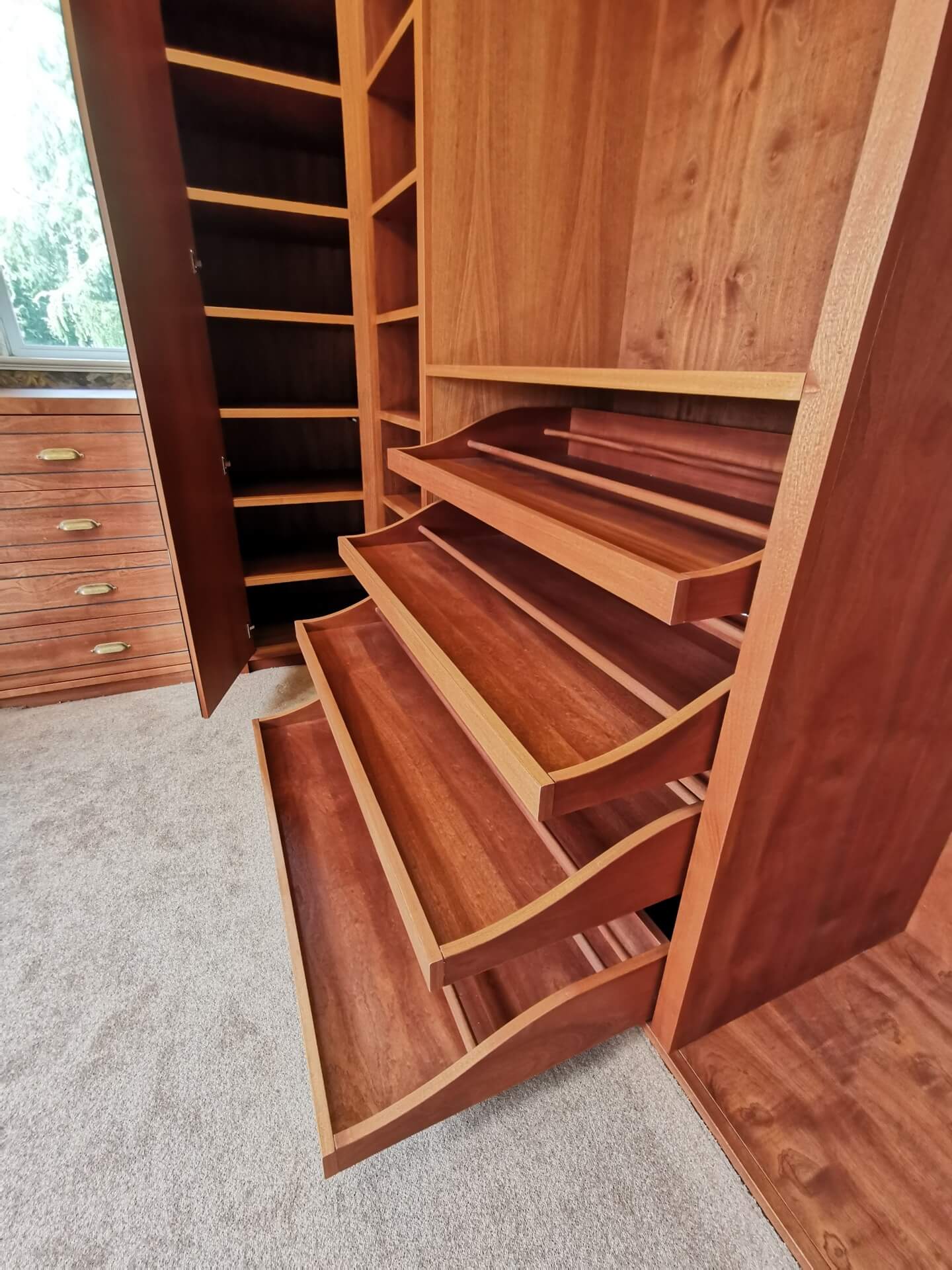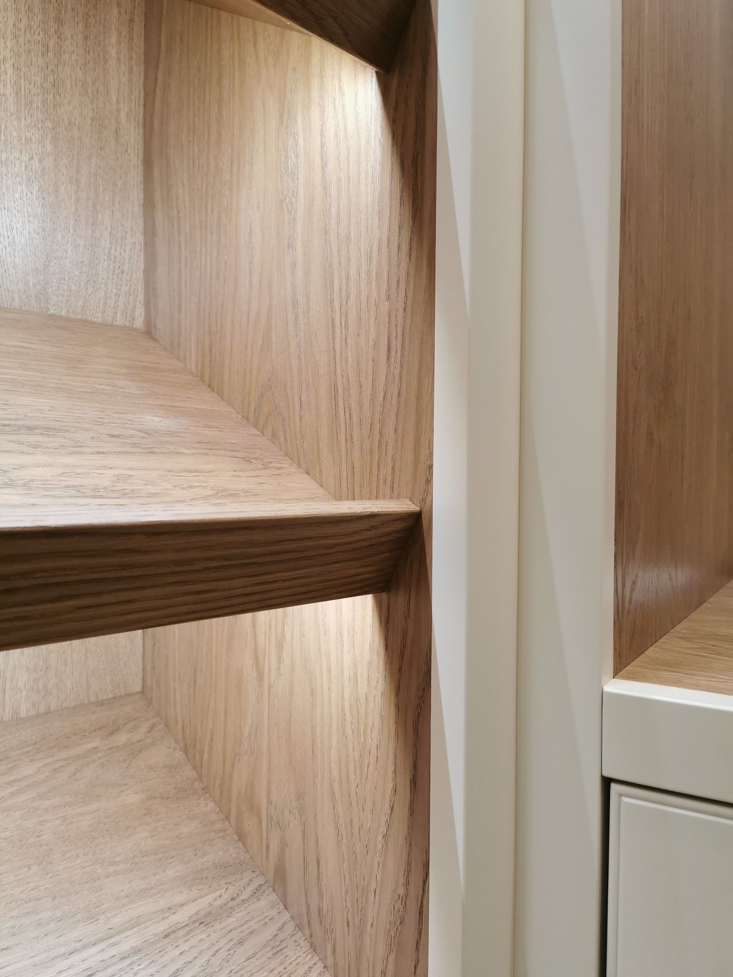 Below are examples of some of the fitted wardrobes in Bristol and Bath we have made, along with drawer units, and other bedroom storage pieces . Mostly we supply fully finished, but sometimes we would supply primed only, ready for a decorator or the client to finish themselves. We provide options for finishing to suit each customers budget and preference. We also offer a variety of interior options. These could be using pre finished textured boards with a large choice of wood grain, matt, or satin colour finish. Real wood veneer interiors, finished with an oil or lacquer.